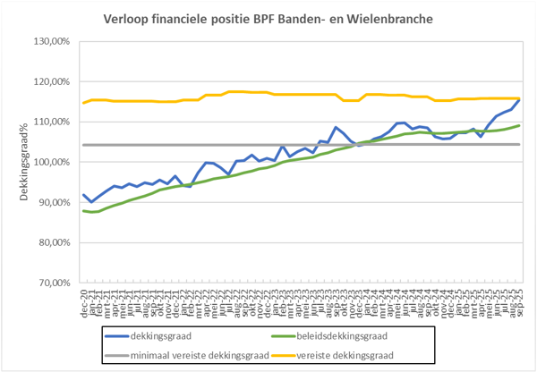 De financiële positie van Bpf Banden en Wielen is al langere tijd niet sterk. Onze beleidsdekkingsgraad ligt onder de vereiste dekkingsgraad. Daarom heeft ons pensioenfonds een herstelplan ingediend bij De Nederlandsche Bank (DNB). Volgens dit herstelplan lukt het ons om binnen 12 jaar financieel te herstellen. Zolang onze financiële positie niet voldoende is, moeten we het herstelplan elk jaar aanpassen en opnieuw indienen bij DNB. Lees hier meer over het herstelplan